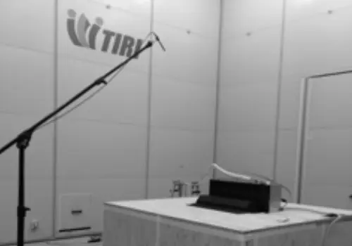エアコンの気流がチャンバーを介することで発生する騒音につて低減できるように東京産業開発センターにて実際に測定し、検証を行いました。